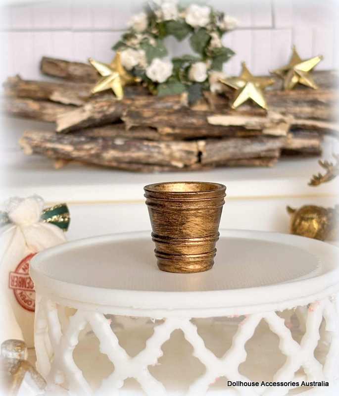 Dollhouse Miniature Gold Planter Pot - Medium - this is a 1:12 scale dollhouse miniature accessory