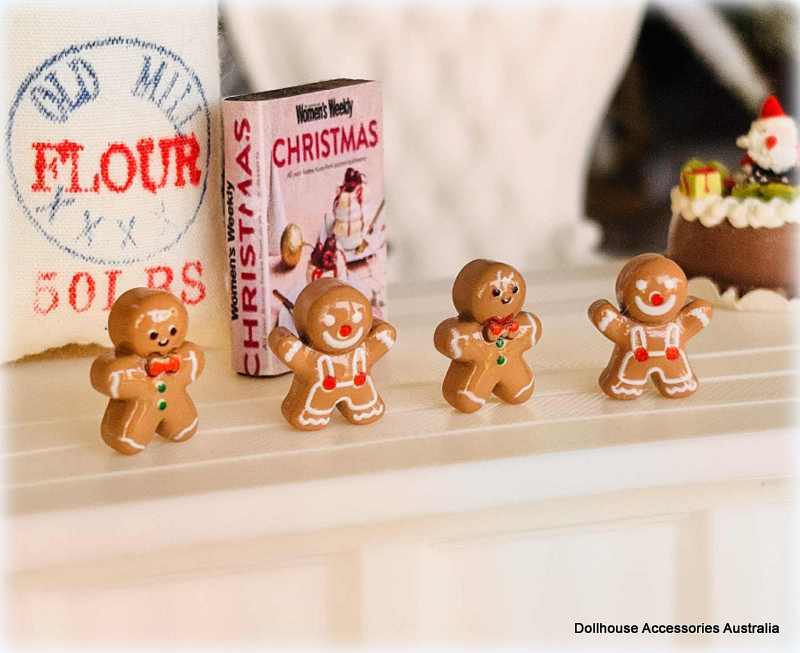 Dollhouse Miniature Gingerbread Figuines - Set of 4- this is a 1:12 scale dollhouse accessory.
