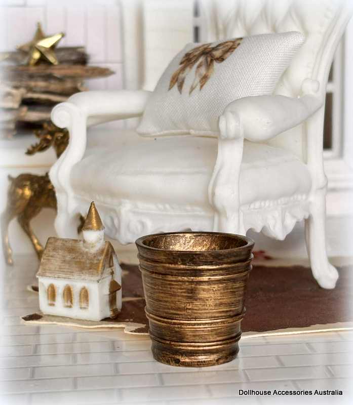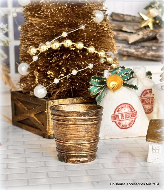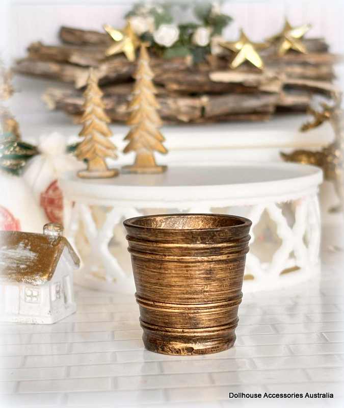 Dollhouse Miniature Gold Planter Pot - Large - this is a 1:12 scale dollhouse miniature accessory
