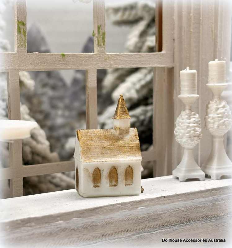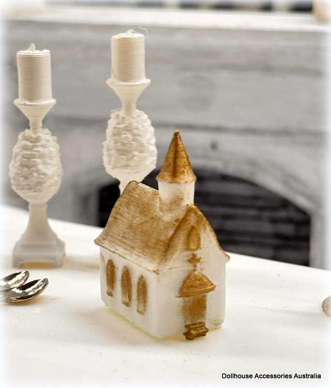 Dollhouse Miniature White/Gold 3D printed Church Ornament - This is a dollhouse miniature 1:12 scale accessory.