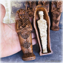 This sale is for 1 x mummy figurine and a 2 part tomb (base and lid) Mummy is made of resin.