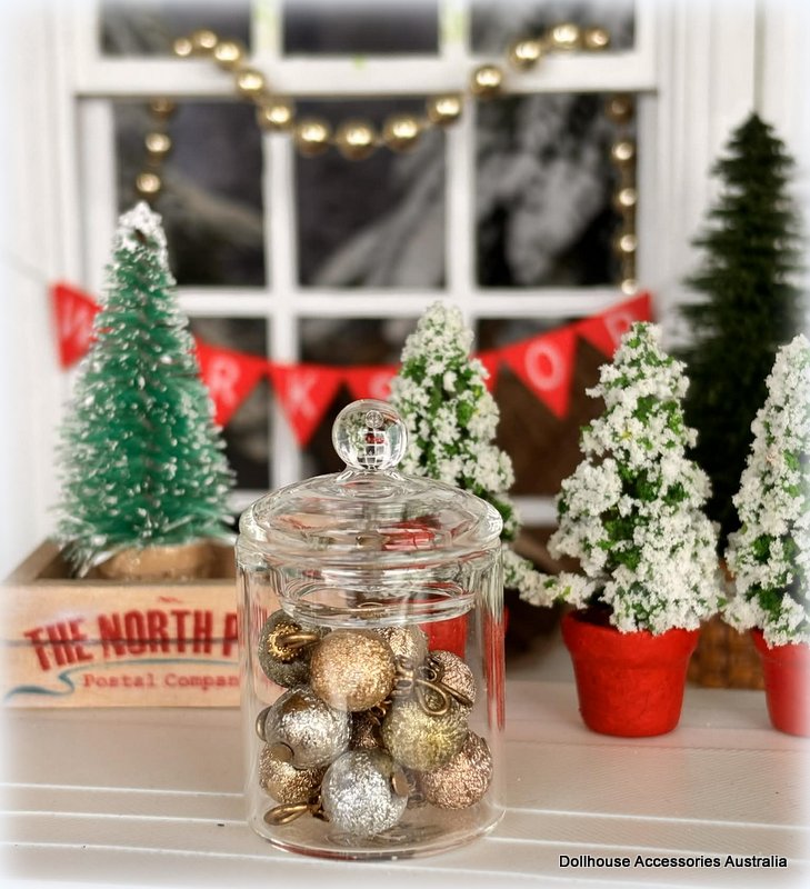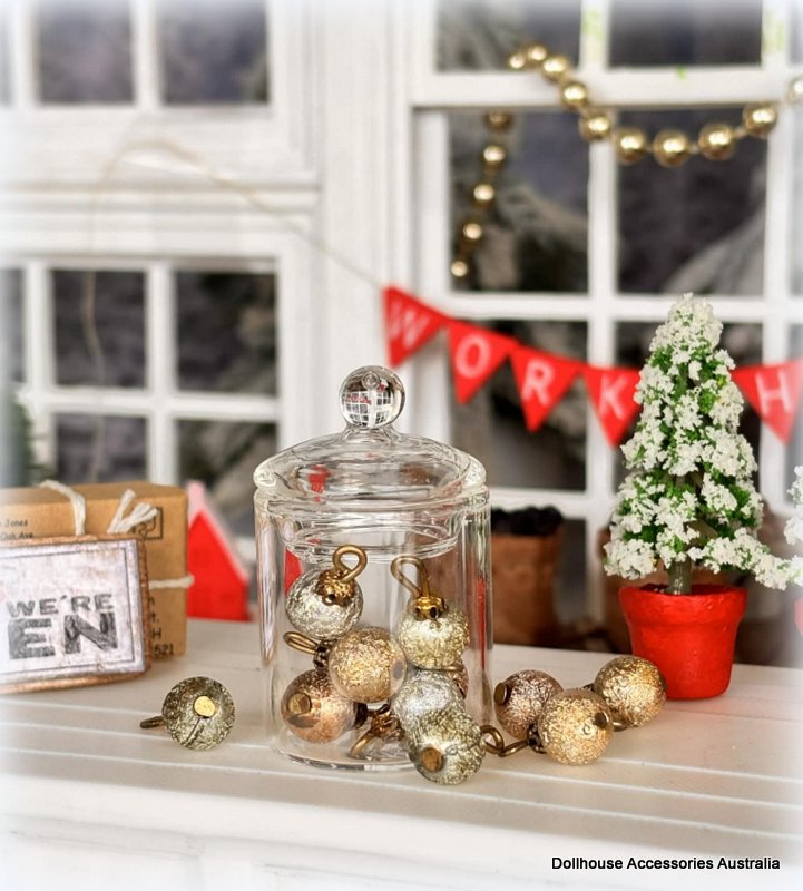 Twelve elegant baubles in timeless gold, silver, and ivory finishes. Perfect for adding authentic vintage charm to your dollhouse holiday scenes, these tiny ornaments capture the nostalgic beauty of classic festive décor and can be hung on a thread or have a hook which can be placed on a Christmas tree.