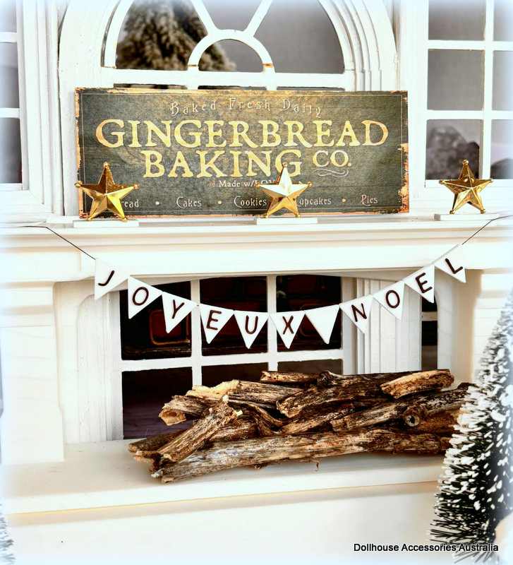 Dollhouse Miniature Hanging Bunting - "Joyeux Noel" - 3D printed. This is a 1:12 dollhouse miniature accessory.