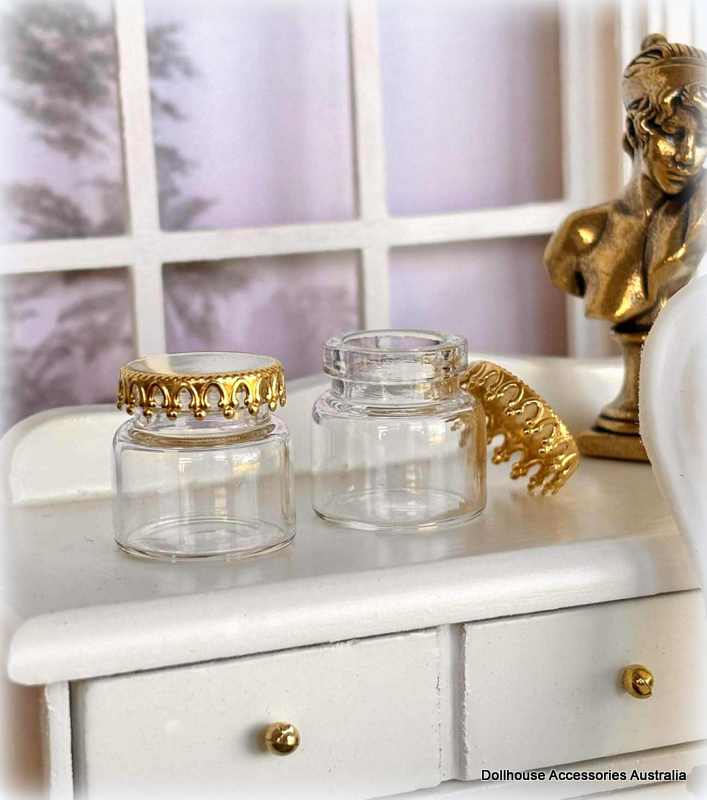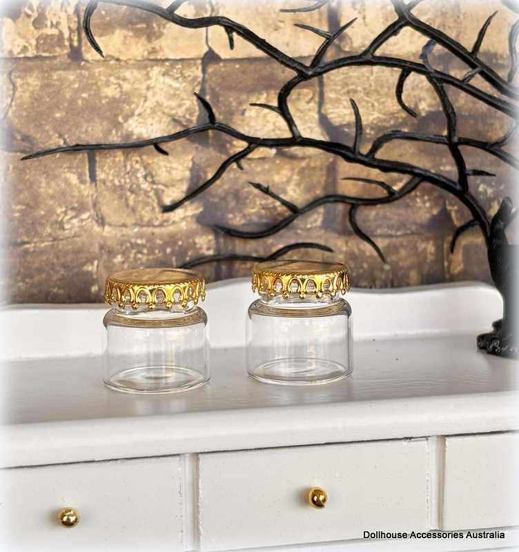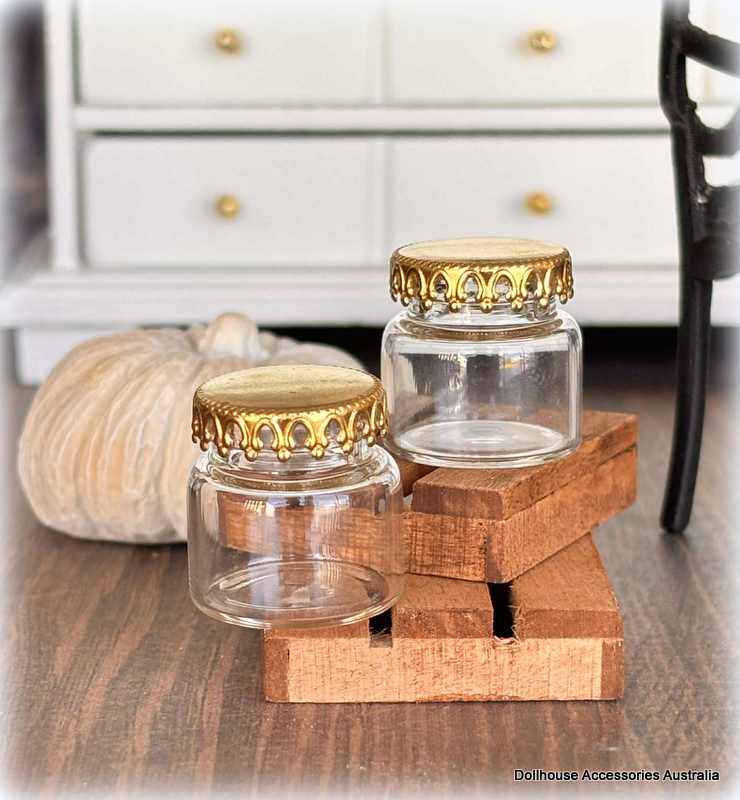 Dollhouse Miniature Pair of Glass Jars with Decorative lids - Miniature- This is a 1:12 scale Dollhouse miniature accessory