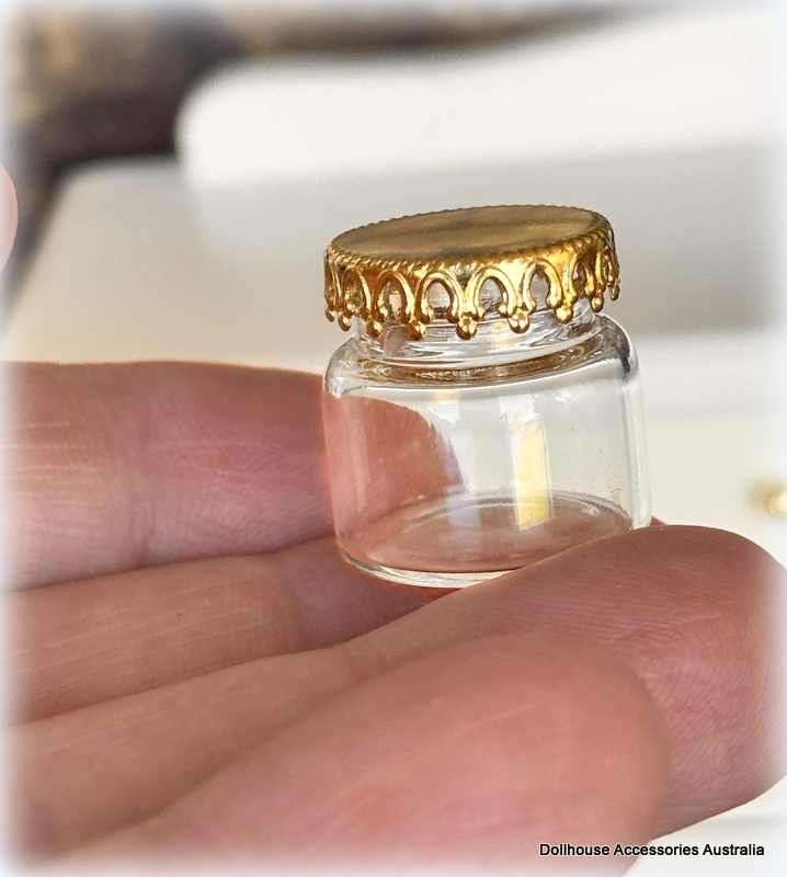 These charming glass jars with decorative lids offer flexible storage options for your miniature settings. Use them to hold tiny cotton balls on your bathroom shelf, fill them with sweets for a miniature candy shop, or display them beautifully on a pantry shelf. Their elegant design compliments a variety of spaces.