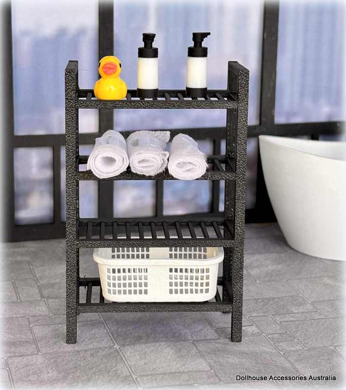 Dollhouse miniature bathroom storage rack shelviing set modern