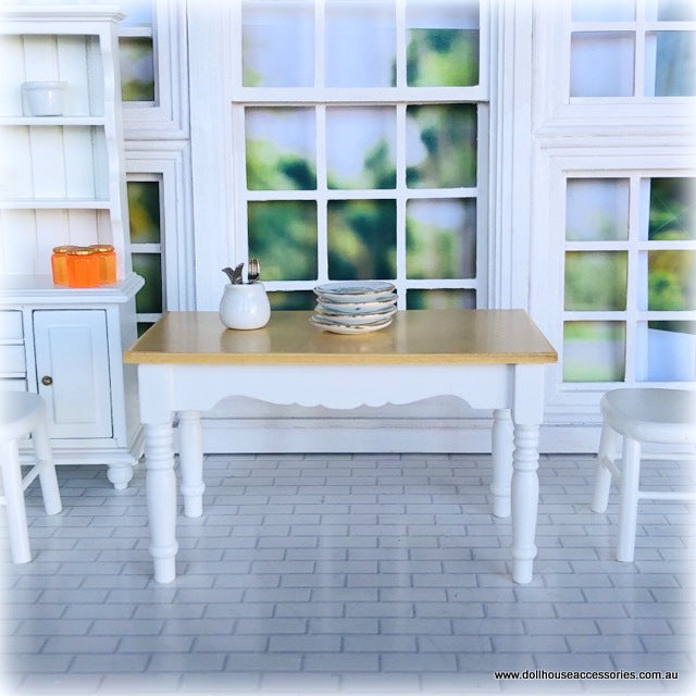 Dollhouse Miniature White and Pine Kitchen Table - Miniature Dollhouse furniture 1:12