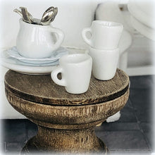 These white ceramic mugs are ideal for any 1:12 scene. So versatile! Hang them in your kitchen on hooks, stack them on a living room shelf. Ideal for your Hot Cocoa or Coffee Bar. They're small enough to be added to any tiered tray decor. These are very well made. And yes, you can pour some real coffee into them!