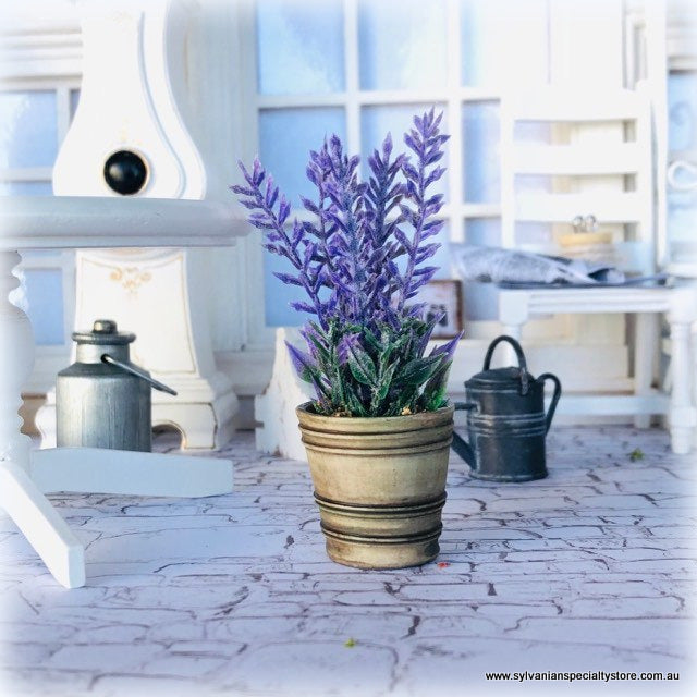 Dollhouse Miniature Lavender in French Country-Style Planter Pot - this is a dollhouse 1:12 scale miniature accessory.