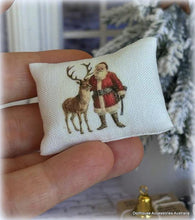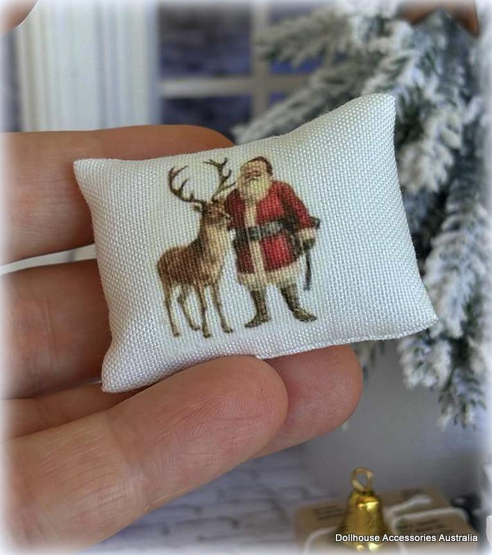 Dollhouse Miniature White Cushion - Santa and Reindeer theme - this is a 1:12 scale suitable dollhouse miniature accessory